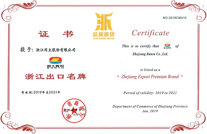 當下是由品牌先導的時代,品牌作為國際市場的通用語言,是支配性資源,是市場競爭的決定力量。閏土出口規模多年位居行業前列,外貿優化升級成果顯著。近年來,公司大力實施品牌戰略,品牌價值和國際競爭力穩步提升,于2012年取得“浙江出口名牌”認定,并在2015年順利通過復核,此次再度榮膺“浙江出口名牌”稱號,彰顯了公司良好的出口形象,肯定了閏土的品牌價值。