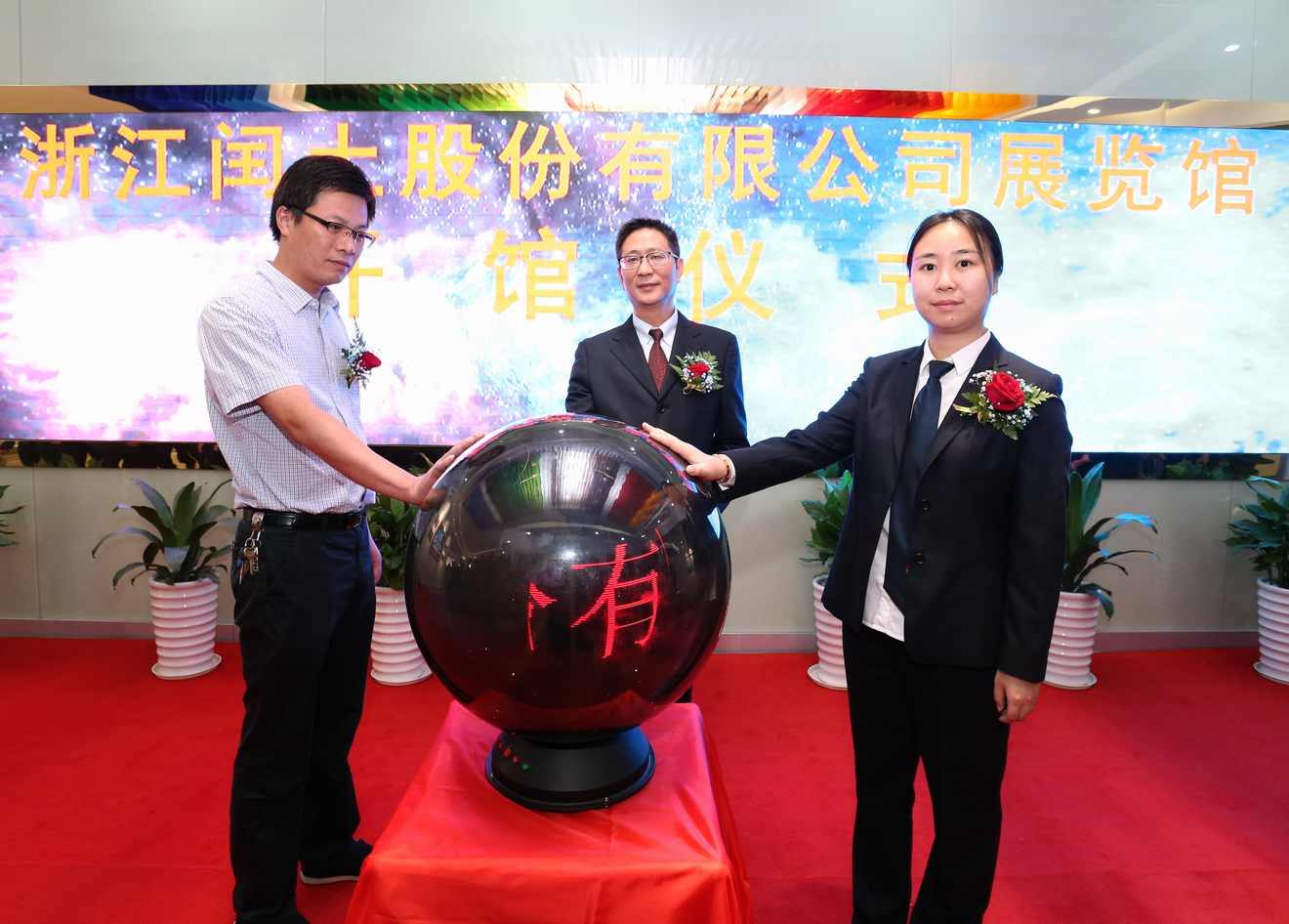 9月8日,閏土展覽館開館儀式在閏土生態工業園科技大樓內舉行。上虞區委常委、杭州灣上虞經濟技術開發區管委會主任胡文煒,道墟鎮黨委書記許江軍,浙江閏土股份有限公司董事長阮靜波啟動開館水晶球。